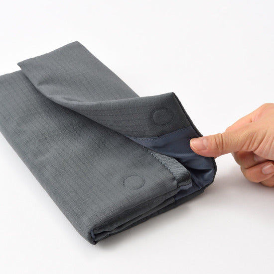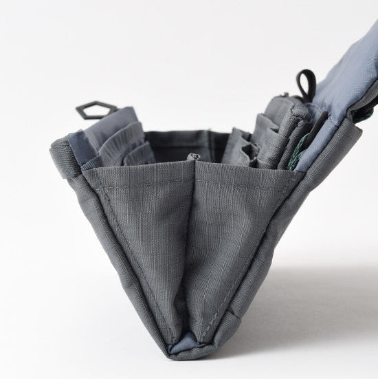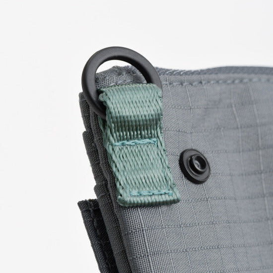 生地は撥水加工をした軽量感のあるマットな風合いの300デニールのポリエステル、格子柄が象徴的なリップストップを採用。裏面にPU加工を施すことで強度面をさらにアップしました。