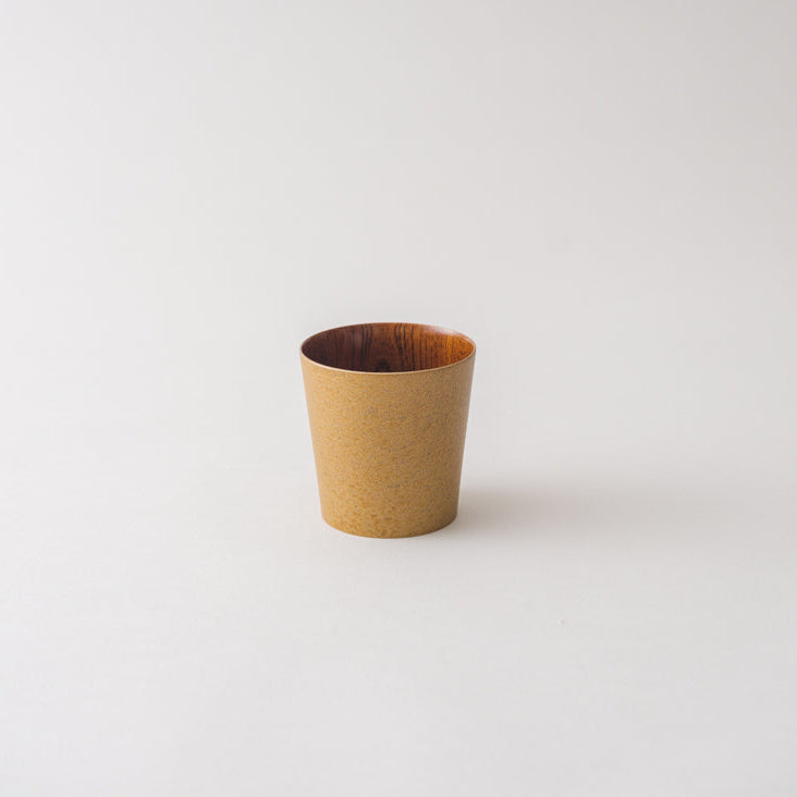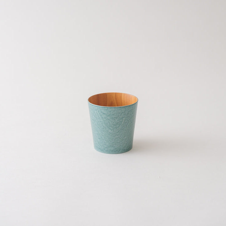 山中の挽物ろくろ技術と塗りの技術を活かし、石川県の四季の色をモチーフに、外側をメタリック塗装で仕上げた薄挽きのカップです。