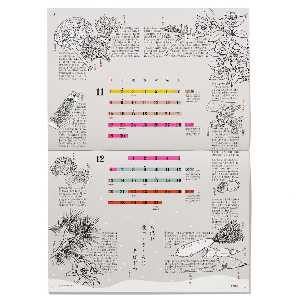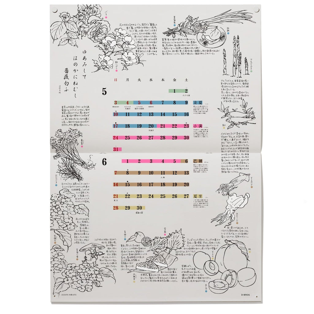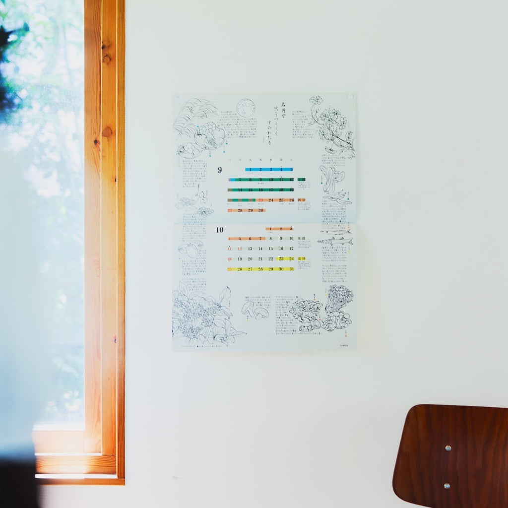 二十四の節気ごとに移り変わる、旬の食べ物や草花、行事など、わたしたちの生活の中にある自然の恵みを再発見できる暦のカレンダー。