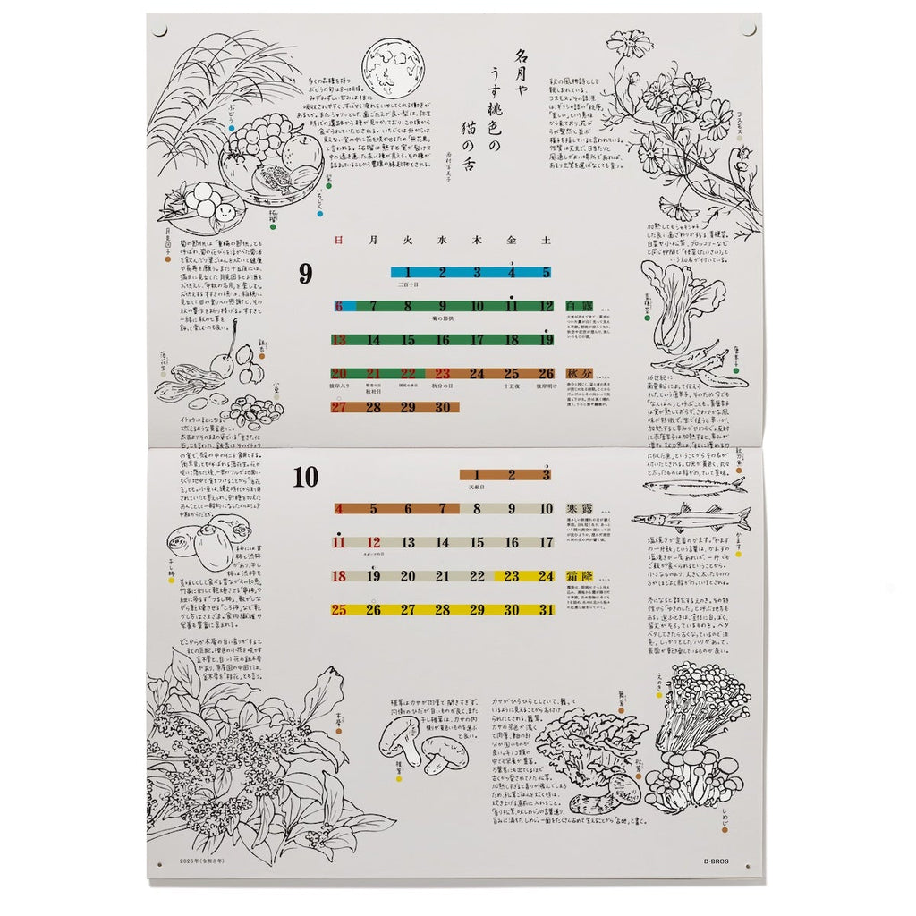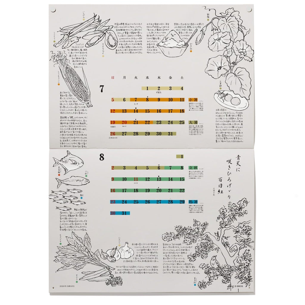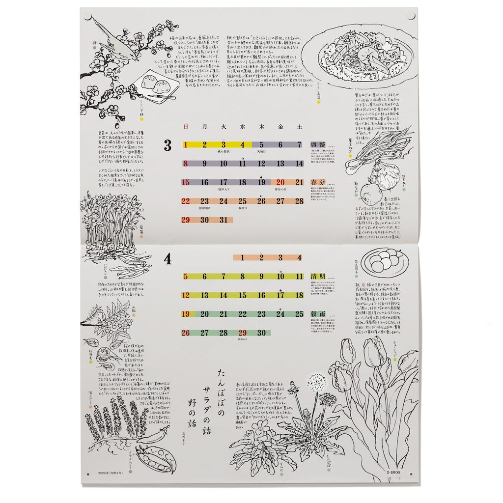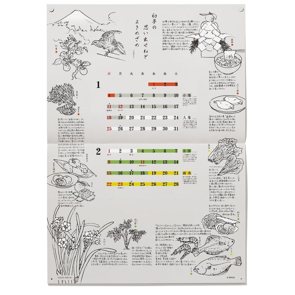 二十四の節気ごとに移り変わる、旬の食べ物や草花、行事など、わたしたちの生活の中にある自然の恵みを再発見できる暦のカレンダー。
