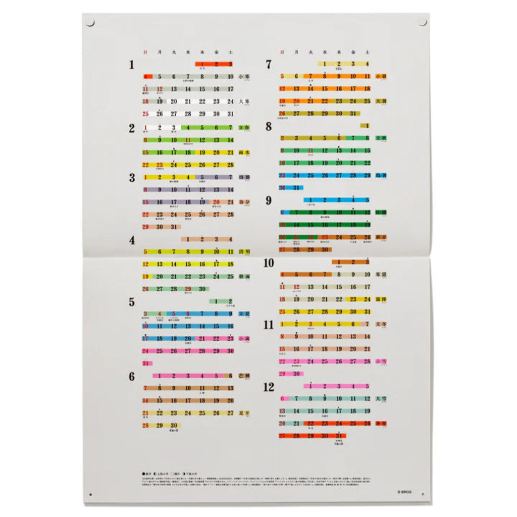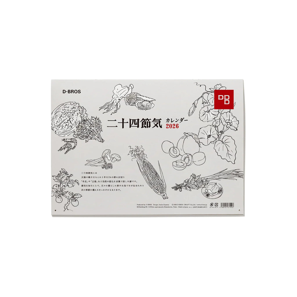 ⼆⼗四節気とは、古来の人々が太陽の動きを観測し、⼀年を⼆⼗四の節に分けた暦の総称。現代の生活にも直結する役立つ情報が盛り込まれ、何気なく過ごしている生活の中にたくさんの自然の恵みがあるということを気づかせてくれるカレンダーです。