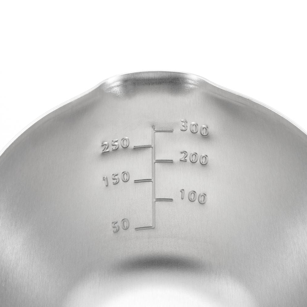 注ぎ口の下には見やすい目盛り付き。下ごしらえの目安に便利です。