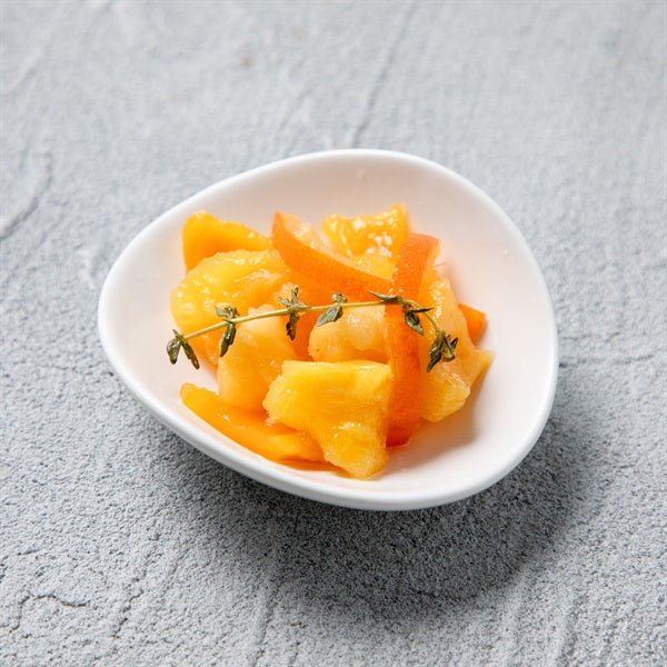 甘みと酸味のバランスが心地よく、果実本来のジューシーさを活かしつつ、やさしい酸味が後味をすっきりと整えてくれます。ほんのりと香るタイムが奥行きを添え、全体を引き締めるさりげないアクセントに。ヨーグルトに添えれば爽やかな朝食に、炭酸水で割ればフルーツビネガードリンクとしても楽しめます。