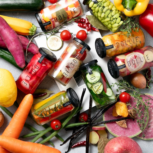 魅力は、その美しさ。ガラス瓶の中で輝く色とりどりの野菜は、パティシエが手掛けたことでまるでアート作品のようです。そして、和・洋・はちみつ・バニラの4種類のピクルス液を素材に合わせて使い分けているその味わいは、一口食べるごとに広がる繊細な風味。甘さと酸味のバランスが絶妙に整えられています。
