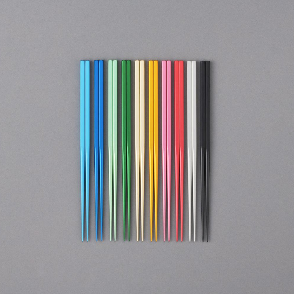 カラフルなアルミから作られた箸。お使いの器や箸置きに合わせて選んでいただくのはもちろん、キッチンやインテリアに合わせたり、家族で好きな色を使ったり、お好みのスタイルで使えます。