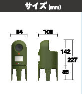| モード | 切り替え:切/超音波A/超音波B 超音波:超音波A:(約)18~23kHz(約)90dB 超音波B:(約)14~18kHz(約)105dB 設置場所:屋内/屋外(防滴構造) |