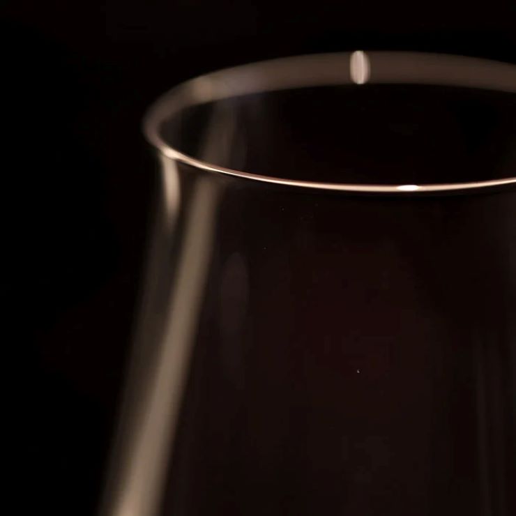 飲み口の「かえし」は単なるデザインではありません。人間は口もとにグラスの縁が当たる角度の変化に合わせて、飲むために息を吸い込み始めるタイミングを反射的に推し量ります。グラスに施した「かえし」には、このタイミングをほんのわずかに早めようという狙いがあります。