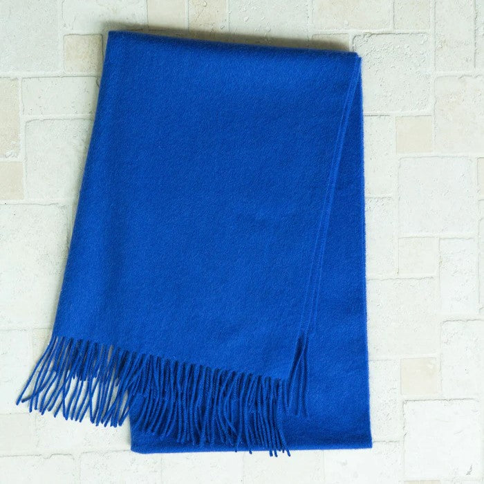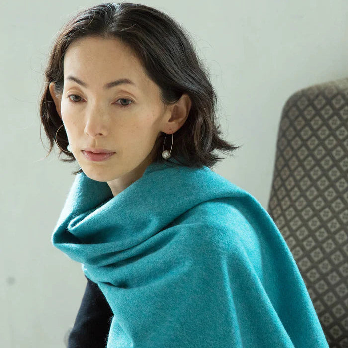 しっかりしたボリューム感と丁度よいサイズ感で、朝晩肌寒いこの時期には、屋外でも室内でも、巻いたり肩やヒザにかけて暖かくお使いいただけます。