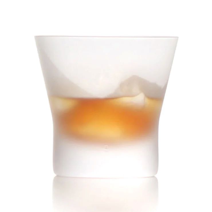 透明なグラスにフロスト加工を施すことで、すりガラスのようにやわらかな印象のグラスが実現。注がれた飲み物の色合いをやわらかに映し出します。