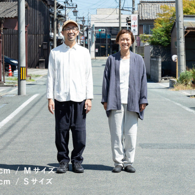 与静冈县恩州市福田灯芯绒合作生产的国产灯芯绒 MONPE拥有柔软蓬松的触感。这种柔软度是在恩州灯芯绒生产过程中反复摩擦并用大量清水洗涤的结果。Fukuda Orimono 对编织的密度和经线的张力进行了仔细研究,以充分利用这种质感。棉花的柔软度被发挥到极致。