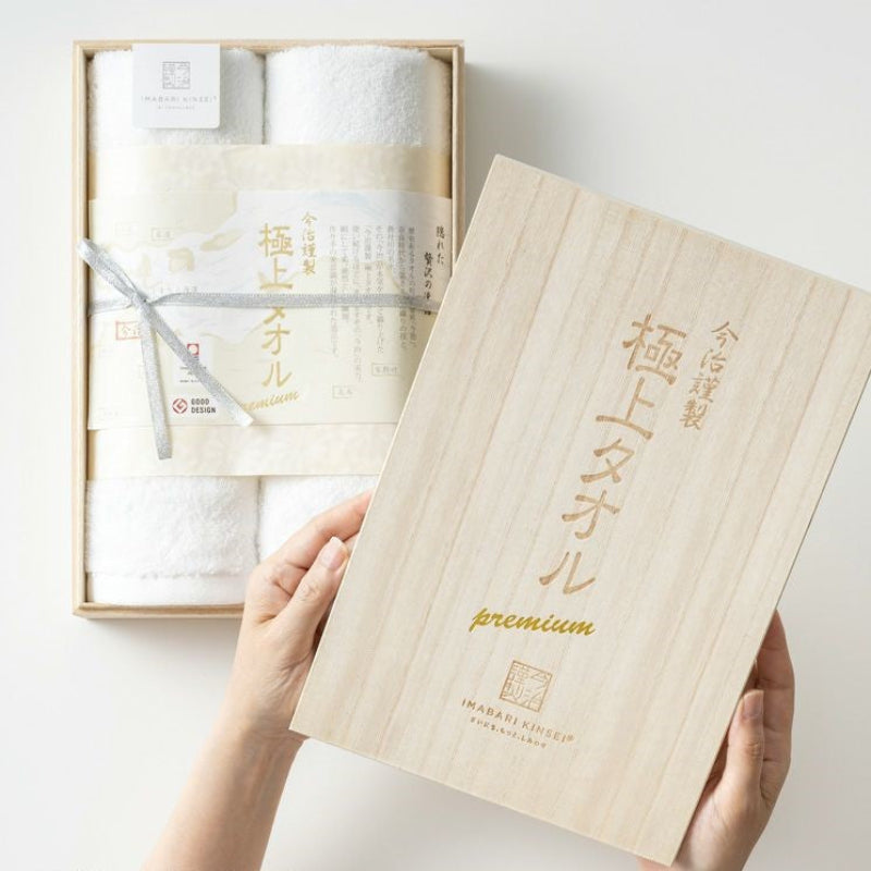品牌名称 Imabari Kinsei 意为 "今治毛巾",寓意毛巾由历史悠久的今治毛巾产地及其工匠精心制作而成,质量可靠,追求毛巾的高柔软度、高吸水性和高耐用性。业内首创的木盒包装,为您带来更独特、更特别的礼物。