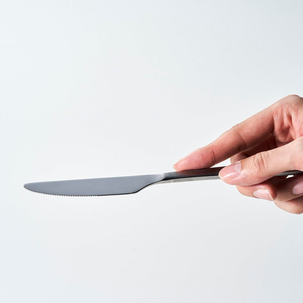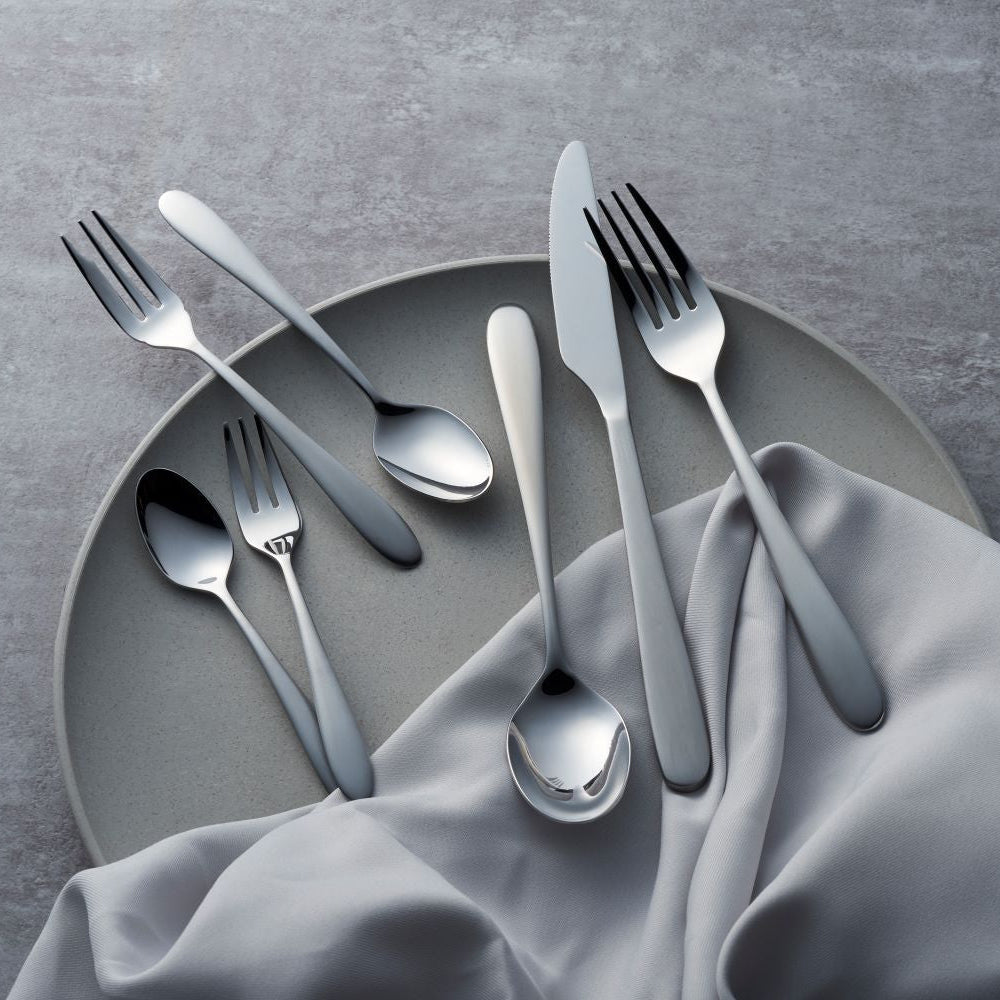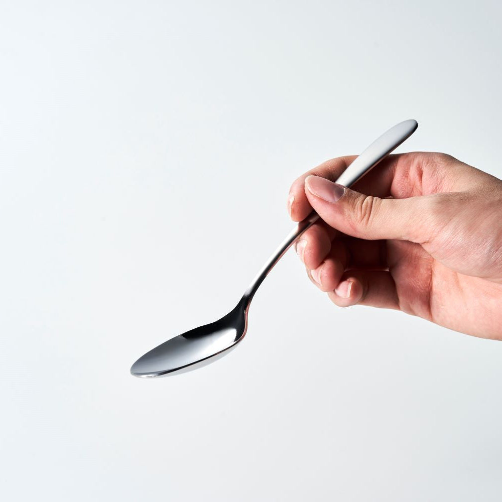 「カトラリーは軽い方が使いやすい」というエンドユーザーの声を反映し、最大約16%の軽量化に成功。また、ハンドル部分をアーチ状にすることで、テーブルにセットされたカトラリーが取りやすく、箸との持ち替え時のストレスも軽減しています。